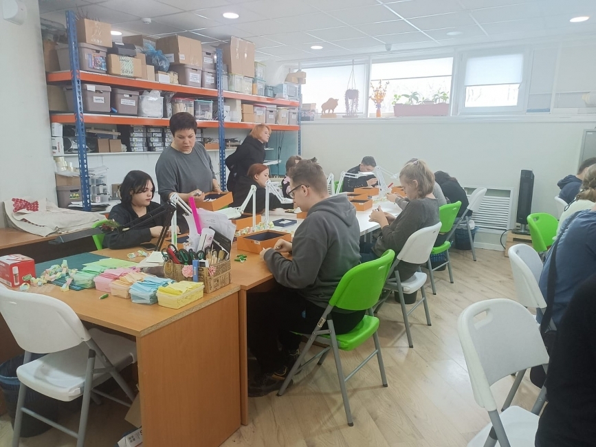 Вместе со студентами ГБПОУ г. Москвы «Колледж индустрии гостеприимства и менеджмента №23» сотрудники фонда создавали на мастер-классе новогоднее настроение, где обучающиеся также оттачивали навыки мелкой моторики и изучали работу интеграционной мастерской.
